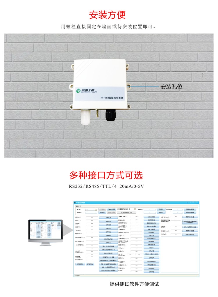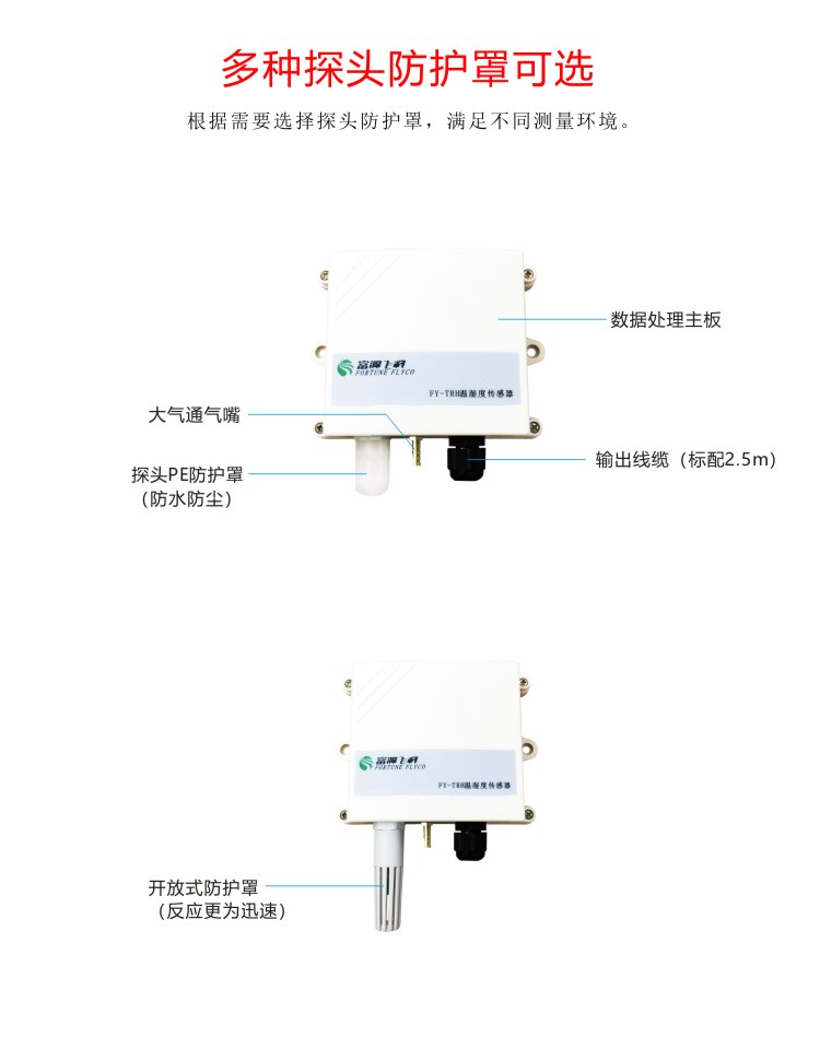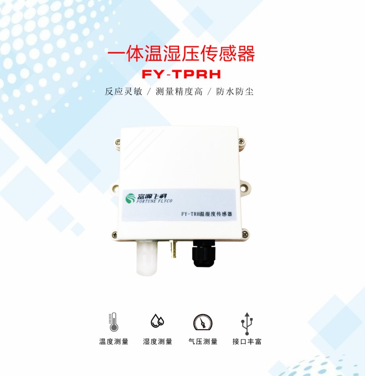 例如:FY-TRH-12V-W2:一體式溫濕壓傳感器:12V供電,RS485輸出 |