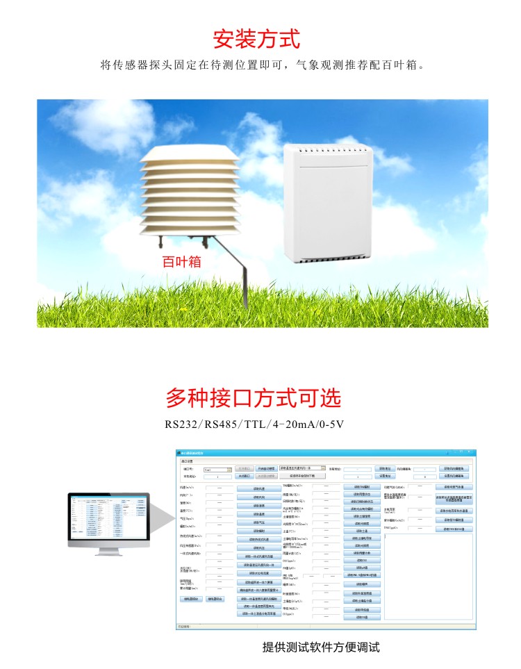 FY-RH大氣濕度傳感器采用高分子薄膜濕敏電容作為感應部件,具有測量精度高、穩定性好等特點。信號變送器采用先進的電路集成模塊,可根據用戶的不同需求將濕度轉換為相應的電壓或電流信號。儀器體積小巧,安裝方便且便攜,性能可靠;可廣泛應用于氣象觀測、環境控制、農業、工廠等諸多領域。