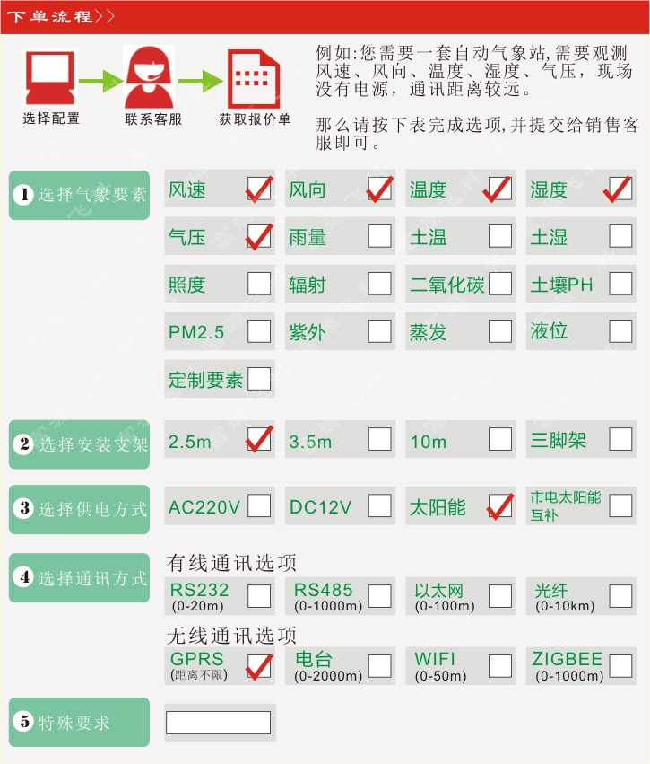 用戶可根據自己的需要選擇需要觀測的氣象環境要素。