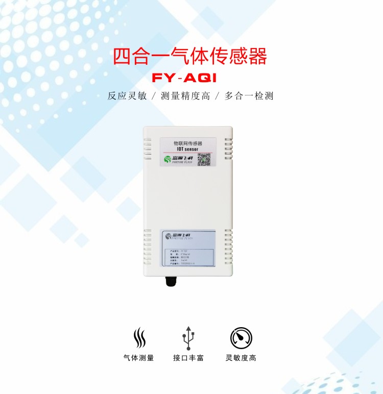 例如:FY-AQI-12V-W2:四合一氣體傳感器:12V供電,RS485信號輸出 |