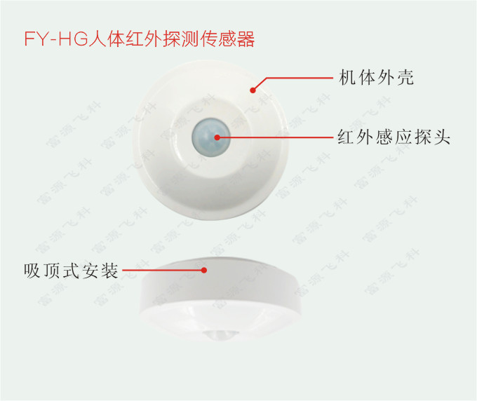 FY-HG吸頂式紅外探測傳感器為高穩定性被動紅外探測器。采用先進的信號分析處理技術,具有超高的探測和防誤報性能。當有人和物體通過探測區域時,探測器將自動探測區域內人體的活動。如有動態移動現象,則會產生報警。