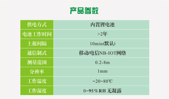 FY-BN智慧垃圾桶傳感器是一款基于NB-IoT網絡的電池供電的新型一體化傳感器,可實現垃圾桶滿溢報警、滿溢檢測等功能。傳感器集合了感知+傳輸二合一功能,不需要其他任何外部設備與供電,僅僅部署一臺傳感器即可實現物聯網檢測。NB-IoT網絡是目前新型的一種基于蜂窩的窄帶物聯網,功耗非常低,同時具有更高的連接質量。配合獨特的低功耗技術,傳感器具有很高的續航能力。本產品作為組建智慧城市的重要環節,可助力智慧環衛概念的落實,推動智慧城市建設。