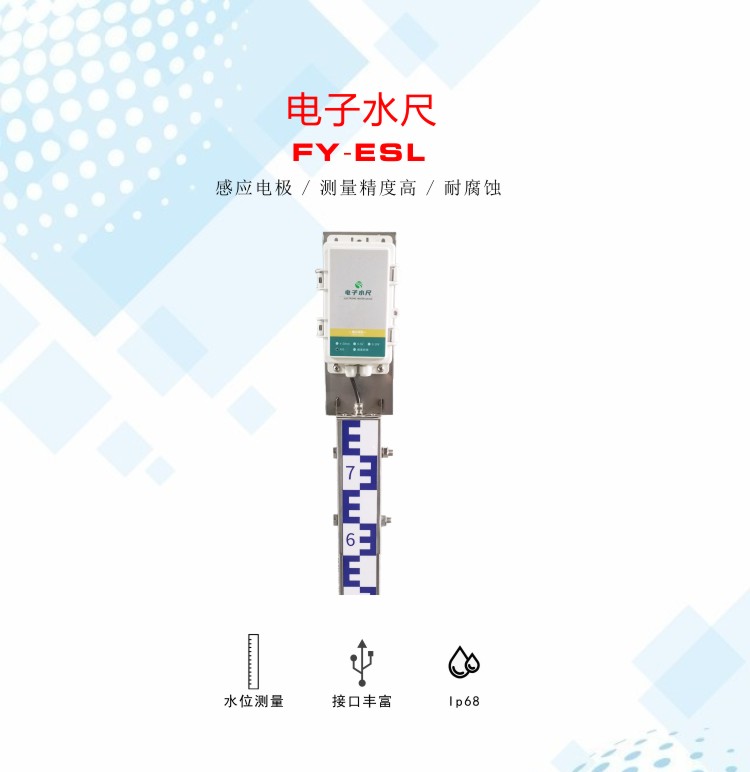 FY-ESL電子水尺是一款采用先進的處理器芯片作為控制器,通過測量電極的水位獲取數據,可用于江河、湖泊、水庫、水電站、灌區及輸水等水利工程中進行水位的監測,及自來水、城市污水處理、城市道路積水等市政工程中水位的監測。