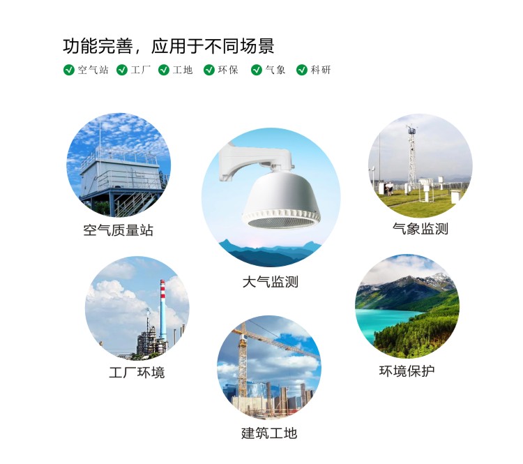 FY-AQI系列一體式多參數空氣質量傳感器采用集成式大氣檢測探頭,可同時監測大氣中CO、NO2、O3、SO2、PM2.5、PM10濃度等,分辨率可達到ppb級,靈敏度高,檢測要素可根據需要配置。傳感器采用先進的電路集成模塊,可根據用戶的不同需求輸出RS232、RS485、4G等通訊方式傳輸。儀器體積小巧,安裝方便且便攜,性能可靠;可廣泛應用于大氣監測、環境控制、氣象監測、工廠等諸多領域。