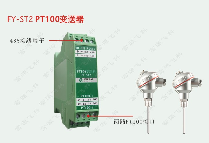 例如:FY-ST2-12V-W:PT100變送器:12V供電,RS485輸出 |