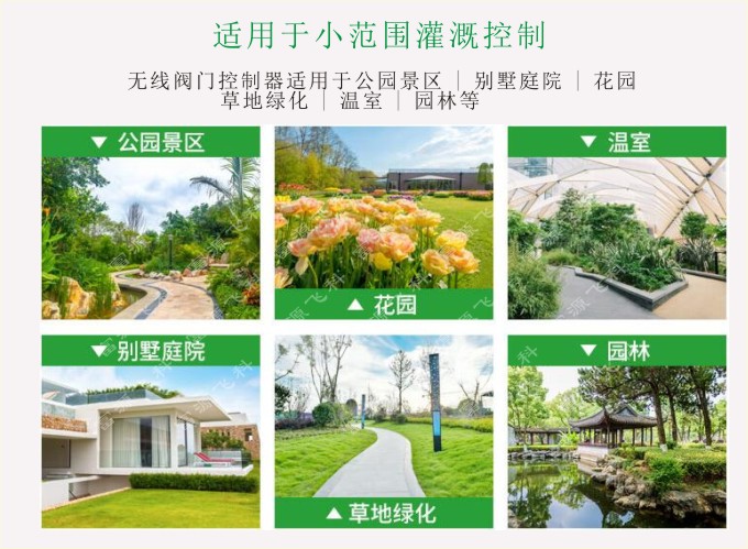 農(nóng)業(yè)大田、蔬菜大棚、果園農(nóng)林、公園綠化、花卉種植、景點噴霧、噴淋降塵、智慧園區(qū)/小區(qū)等。