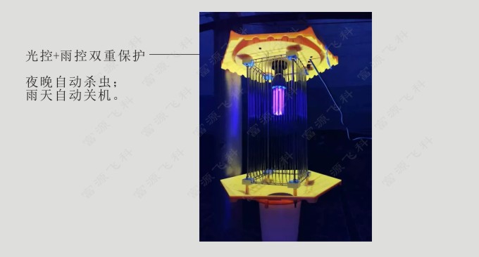 7、低溫保護:當空氣溫度低于5攝氏度左右(誤差±5%),殺蟲燈進入自動休眠狀態,可增加蓄電池的使用壽命。