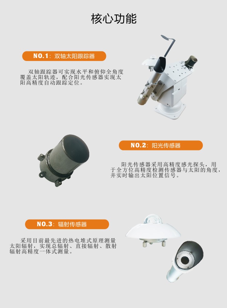 ●一體式測量太陽總輻射,直接輻射,散射輻射等;