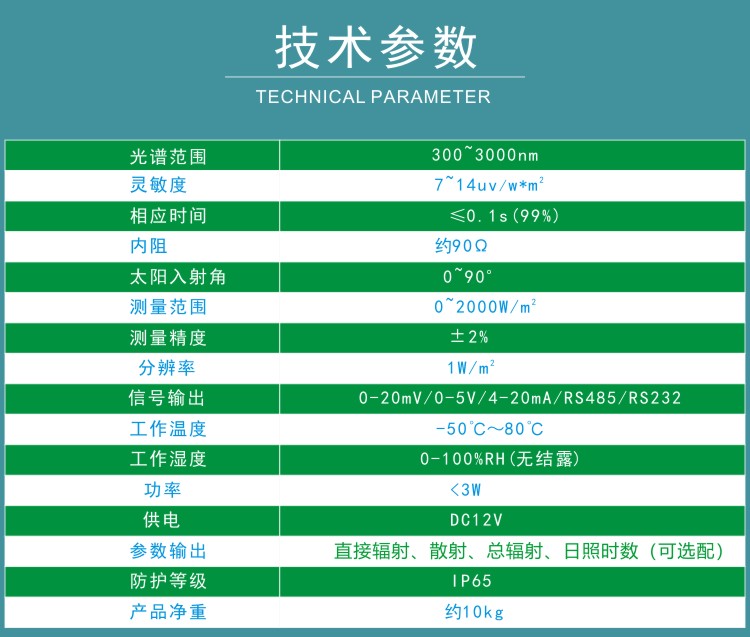 FY-AS2全自動跟蹤太陽輻射儀用于自動測量太陽直接輻射以及散射輻射。儀器采用高靈敏度陽光傳感器以及自動跟蹤裝置,可自動實時精確跟蹤太陽方位,實現太陽直接輻射值以及散射輻射的同步測量。本傳感器可應用于氣象探測、太陽能利用、農業、建筑物理研究、生態監測考察部門。