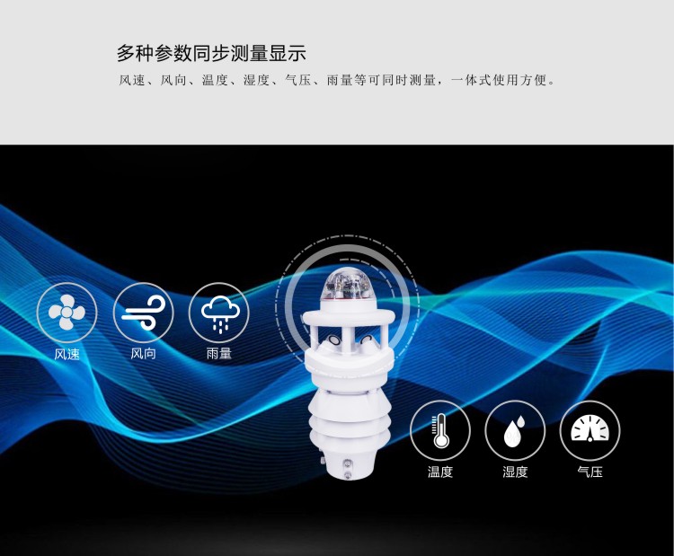 ●風速、風向、溫度、濕度、氣壓、雨量等一體式;