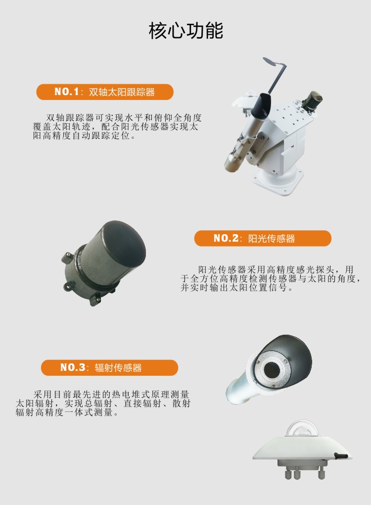 ●全自動測量,無人值守。采用二維自動跟蹤方式,太陽赤緯角跟蹤自動調整,全天侯自動對太陽實時追蹤;