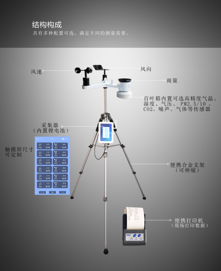 ?可對空氣溫濕度、風(fēng)速風(fēng)向、噪聲、PM2.5、PM10、氣壓等數(shù)據(jù)進行測量;
