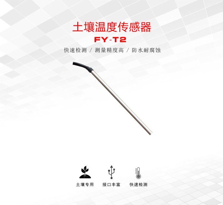 FY-T2土壤溫度傳感器采用進口高精度溫敏器件,具有測量精度高、穩定性好等特點。本產品體積小巧,安裝方便,傳輸距離長,抗干擾能力強。可廣泛用于氣象、溫室、環境、灌溉、實驗室、工農業及交通等領域的溫度測量。